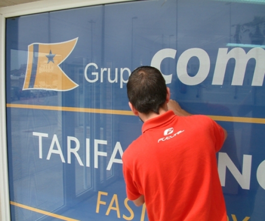 Imagen corporativa, vinilo en cristales, carteles de ofertas y rotulacion de toldos.