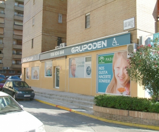 Cambio de imagen de clinica dental, vinilo microperforados en ventanas.