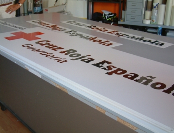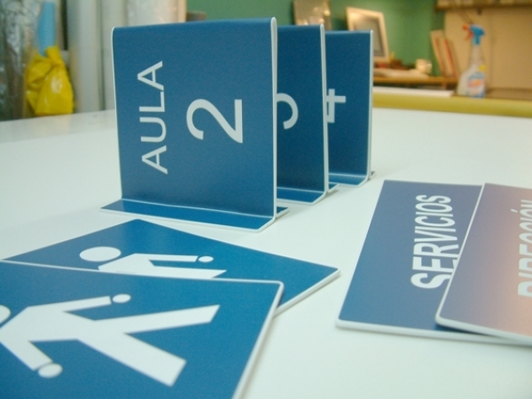 Rotulo a 2 caras, tipo sandwich pvc/hierro/pvc.